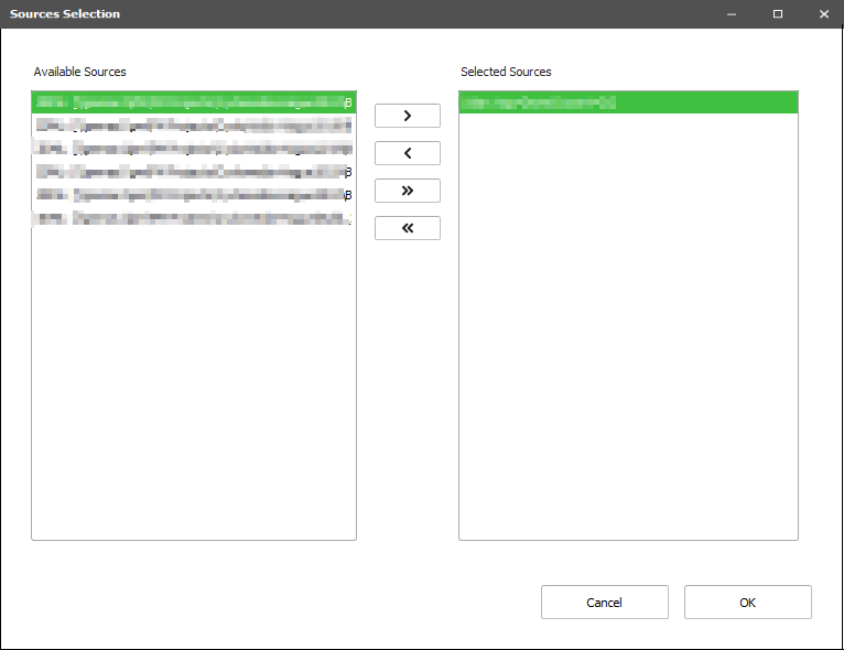 to insert it in the Selected Sources section. If you want to remove a source from the Selected Sources section, select the source, and click Remove