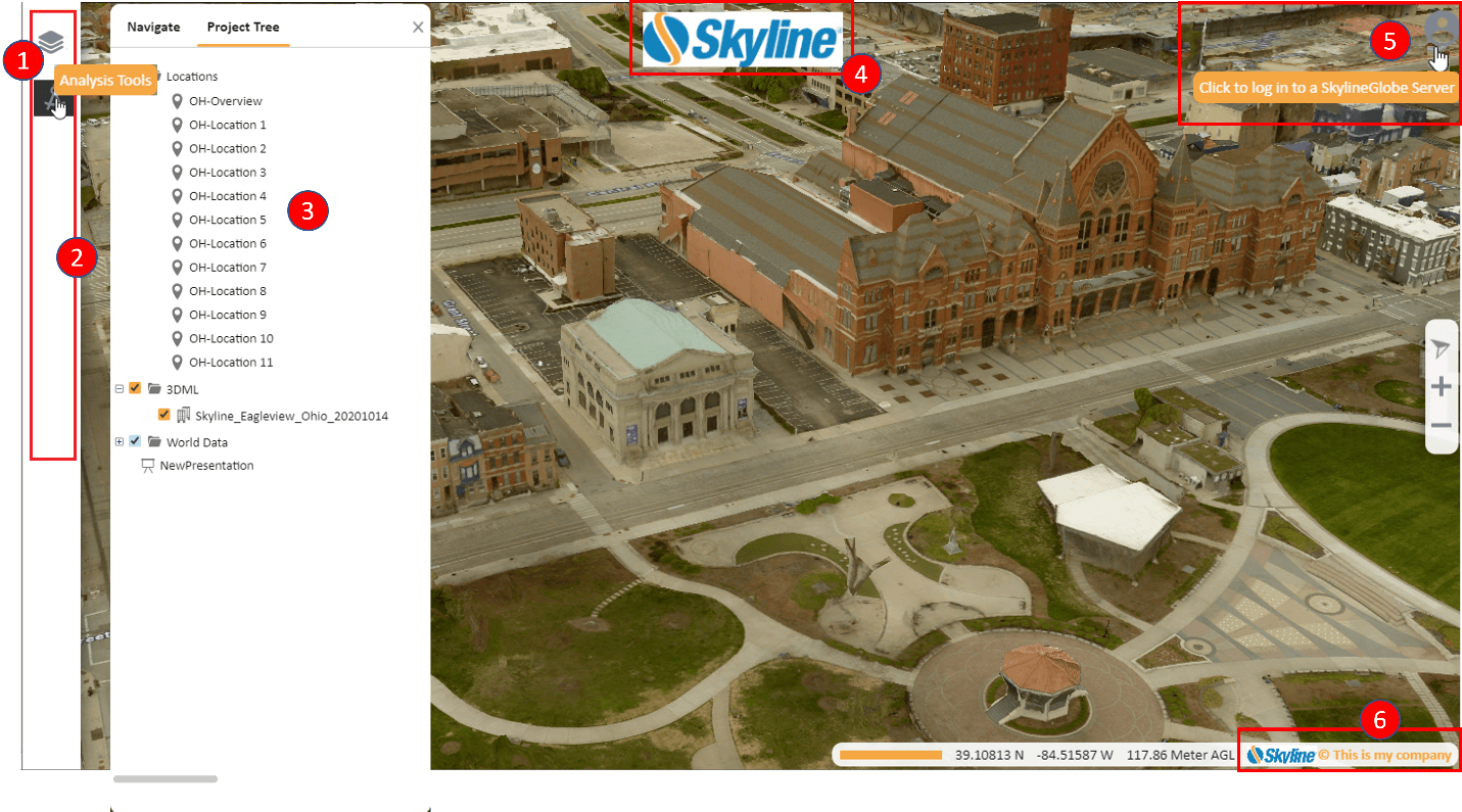 E.g., https://cloud.skylineglobe.com/TEF/TE.html?project=https://cloud.skylineglobe.com/sg/demos/projects/Mexico_Beach_Emergency_Response&css=sampleCustomizedGUI. See "URL Parameters" in this chapter for information.