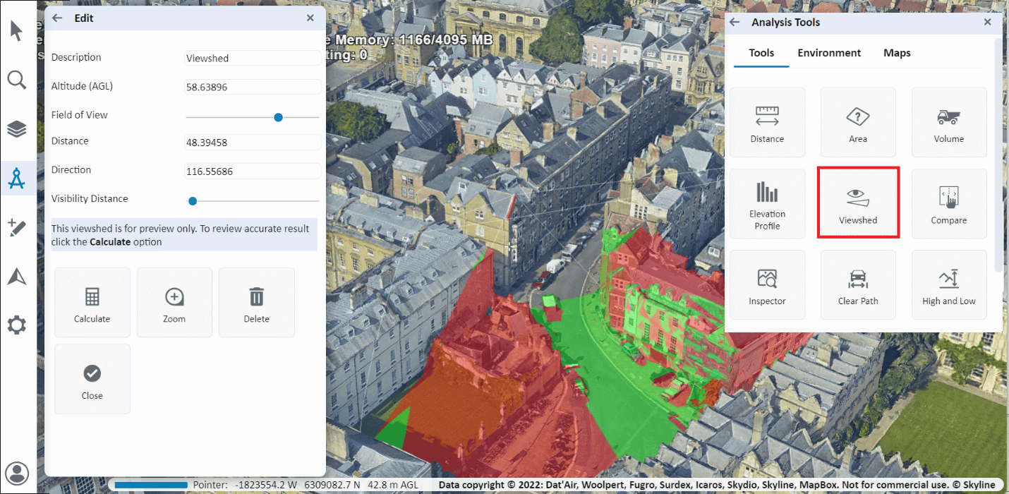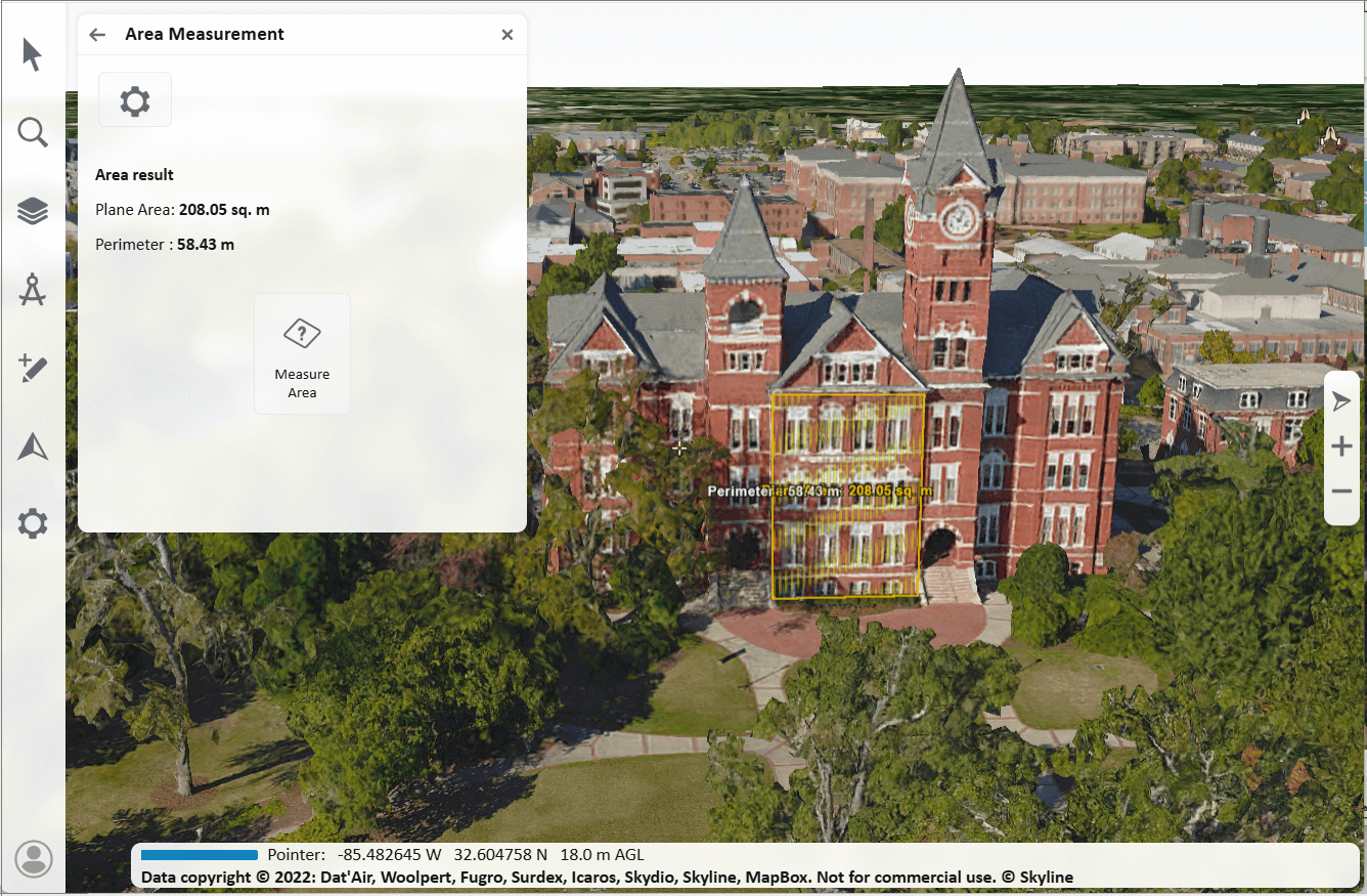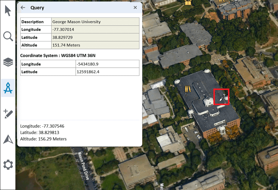 Query any point or object in the 3D World: This tool is only available in Chrome/Edge browsers.