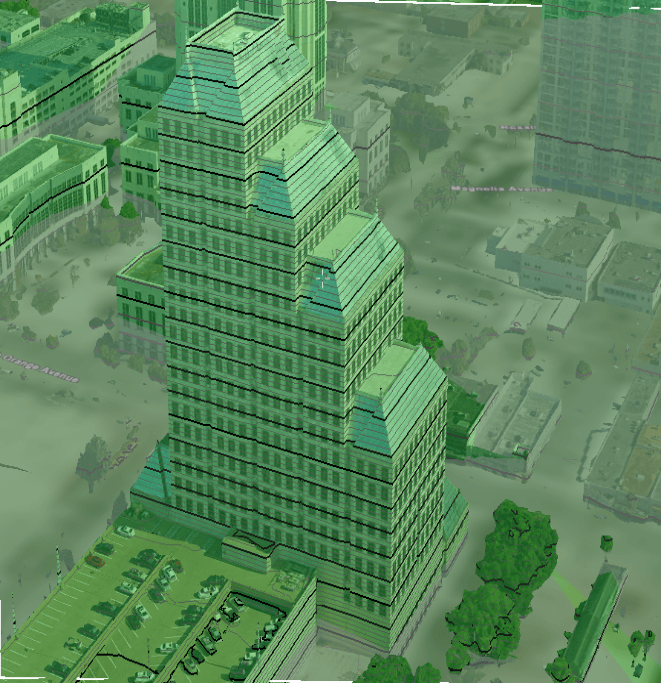 The Cross Section tool makes a horizontal or vertical straight cut to expose obscured sections of the 3D View. The cross section slider increments are based on the Plane Size set and the distance between the camera and the plane when creating the cross section box, i.e., the narrower the plane and the closer the camera, the smaller the increments. This tool is only available in TerraExplorer Fusion Plus.