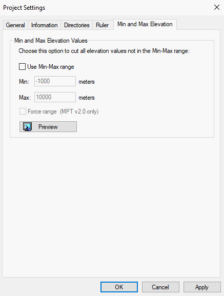 Project Settings - Min and Max Elevation Tab