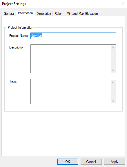 The Information tab contains general project information: the project name, description, and tags. You can modify the information in these fields as required.