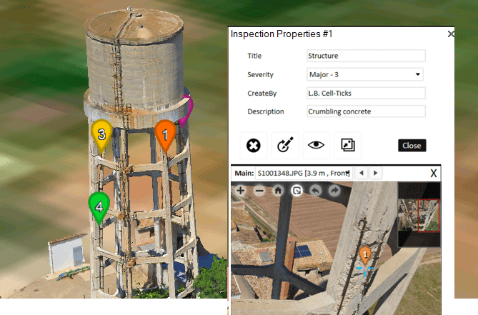 The Photo Inspector also provides a set of drawing and measurement tools to mark areas and locations on the model and generate a detailed report with all inspection details.