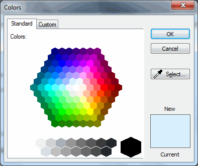 § In the Custom tab, create Custom colors using the color matrix and luminosity slider or by typing exact parameters in the value-boxes. Click OK.