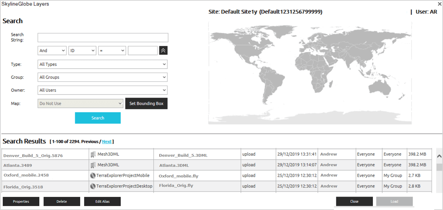 3. Search for the required layer. See “Searching for SkylineGlobe Layers” in this chapter.