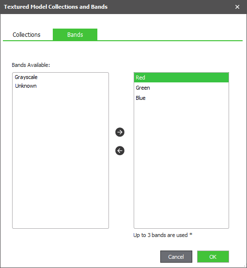 Note: When selecting bands for mesh texture generation, three bands are required.