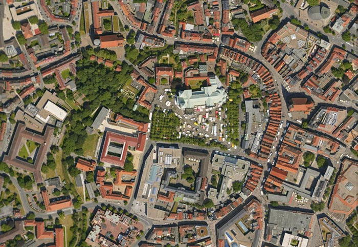 Combine aerial images from high altitudes with drone images from low altitudes in a single environment. Include co-registration with LiDAR from either aerial or terrestrial platforms to achieve street-level visualization and modeling and engineering grade accuracy and precision. Robust aerotriangulation engine with interactive control point editing and measurement for verification of accuracy and quality reporting.